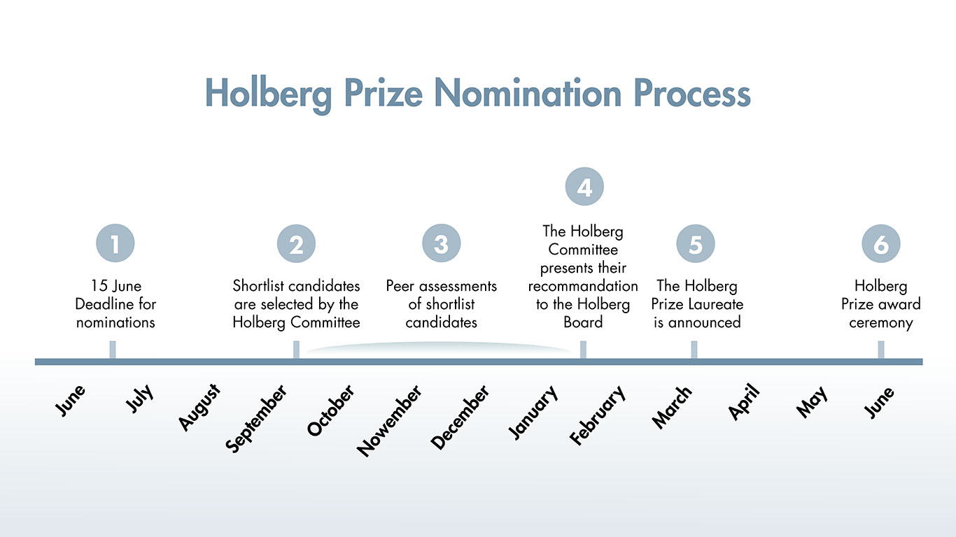 Alle vitskapleg tilsette ved forskingsinstitusjonar eller akademi kan nominera kandidatar til Holbergprisen og Nils Klim-prisen. Kjenne du til ein aktuell kandidat? Meir informasjon om nominasjonsprosessen for Holbergprisen finn du på denne sida. Nominasjonsskjemaet for Holbergprisen 2024 er no lagt ut.